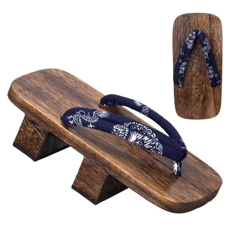Estas sandalias de tamaño aproximado son las tradicionales geta japonesas, que todavía se siguen utilizando en Japón, especialmente durante festivales y ceremonias. Las dos plataformas de este par las hacen atípicas para los occidentales. Estos «dientes» adicionales reducen el contacto con el suelo para mayor comodidad al llevar estas sandalias geta japonesas con un yukata o un kimono.