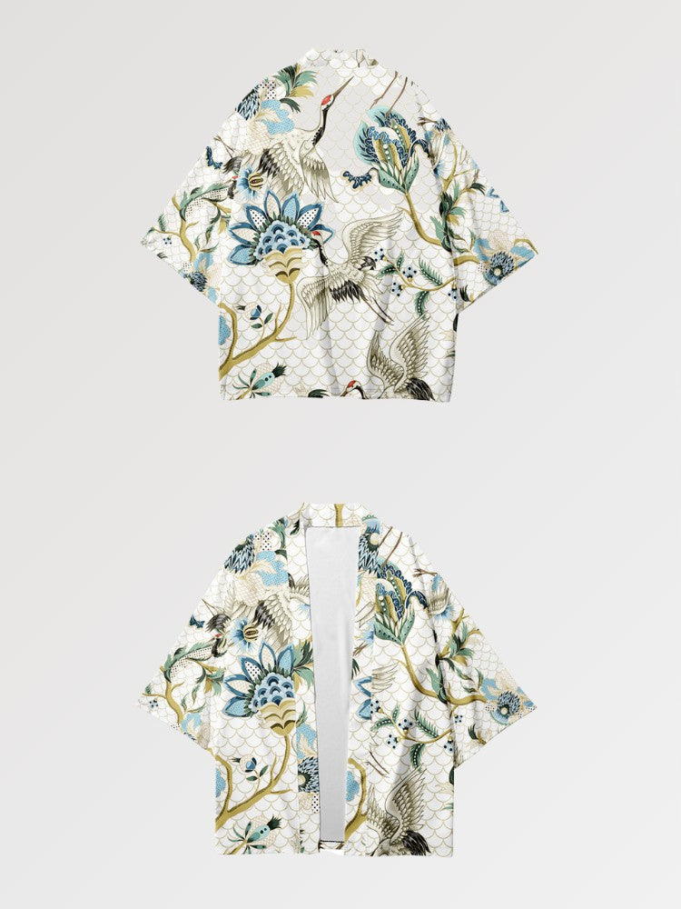 Haori para mujer con diseño vintage y colores suaves decorado con motivos japoneses